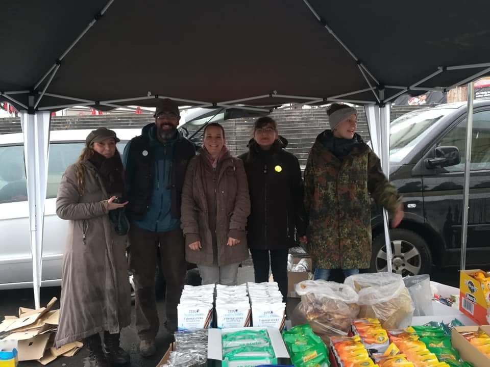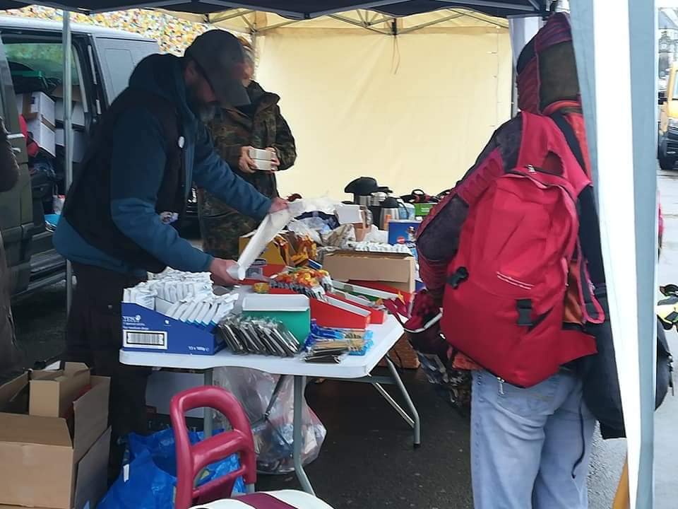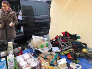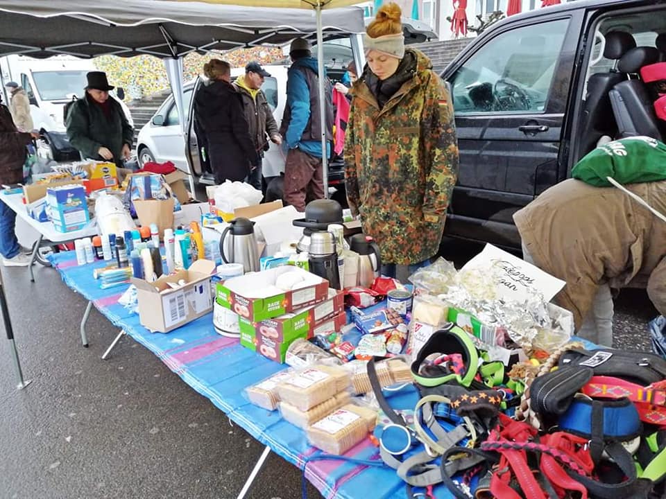 In den vergangenen Monaten haben wir gemeinsam mit unseren Mitgliedern und Unterstützern Futter, Leckerchen, Leinen, Geschirre, Halsbänder, Mäntelchen für die Hunde gesammelt und natürlich auch für die Menschen Hygieneartikel, Kleidung, Süßigkeiten und Selbstgebackenes eingepackt um bei usseligem Wetter Menschen eine Freude zu machen.